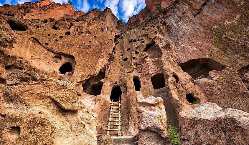 Das Bandelier National Monument in der Nähe von Los Alamos leitet mehr als 33.000 Hektar Rugged Canyon und trockenes Mesa -Terrain, in dem einst die Pueblo -Leute von Stammeinwohnungen beheimatet waren. Archäologische Erkenntnisse zeigen, dass die Wohnung in dem Gebiet über 11.000 Jahre zurückzuführen ist, wobei die bemerkenswertesten Überreste von Gemeinden, die zwischen 1150 und 1600 n. Chr. Gediehten.