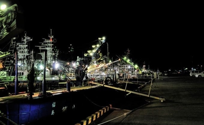 Wenn Sie eine ruhige Nachtlandschaft genießen und dabei dem Rauschen der Wellen lauschen möchten, ist der Fischereihafen Kesennuma sehr zu empfehlen. In diesem großen Fischereihafen liegen viele große Schiffe und Fischerboote.