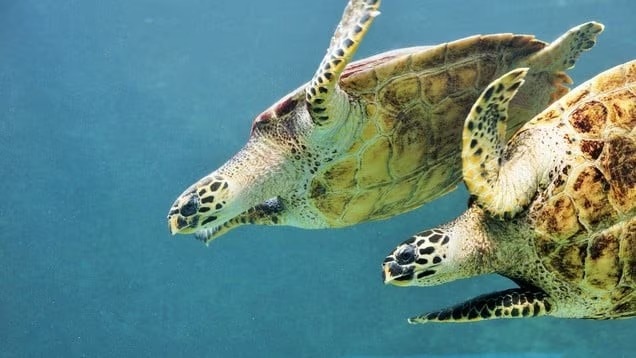 Das Meeresschildkrötenpool befindet sich bergab vom Hauptgebäude in Richtung Ozean und beherbergt fünf der acht Meeresschildkrötenarten der Welt. Aus der Kellerebene können Sie sie durch die Seite des Panzers beobachten - es fühlt sich fast so an, als würden Sie neben ihnen tauchen!