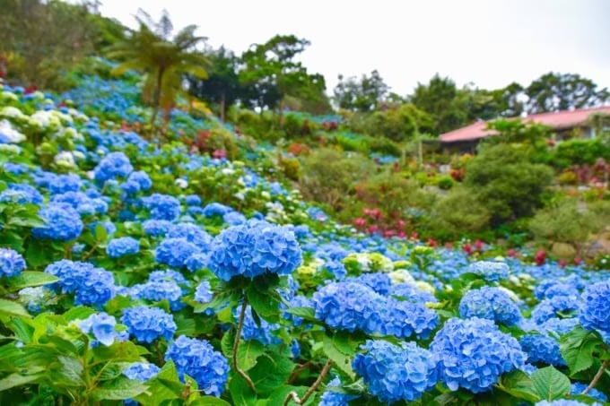 Die Hortensie -Saison läuft von etwa 20. Mai bis Ende Juni. In dieser Zeit ist der Garten jeden Tag geöffnet und begrüßt die Besucher, die zur Erkundung von Motobu kommen.