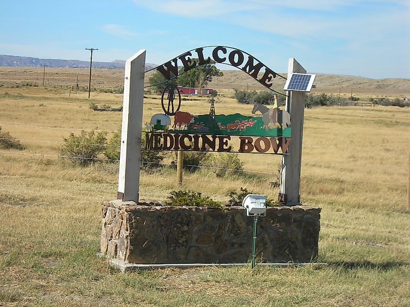 Willkommen in Medicine Bow, Wyoming, Schild. Bildnachweis:Jimmy EmersonDVM über Flickr.com.