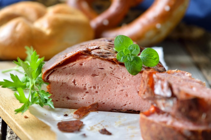 Wie eine Kreuzung aus Hackbraten und Bolognawurst ist Leberkäse die Krönung der Fleischgerichte im Land. Der Name bedeutet wörtlich übersetzt „Leberkäse“, was etwas irreführend ist, da oft keine dieser Zutaten enthalten ist. Eine Mischung aus verschiedenen Fleischsorten, meist Corned Beef, Schweinefleisch und Speck, wird zu einer feinen Paste gemahlen und im Ofen gebacken, bis eine perfekt knusprige Kruste entsteht. Die Textur und der Geschmack sind phänomenal und passen perfekt, wenn man es in Scheiben geschnitten und zwischen zwei Brotscheiben klemmt – eine Variante, die man im ganzen Land findet.