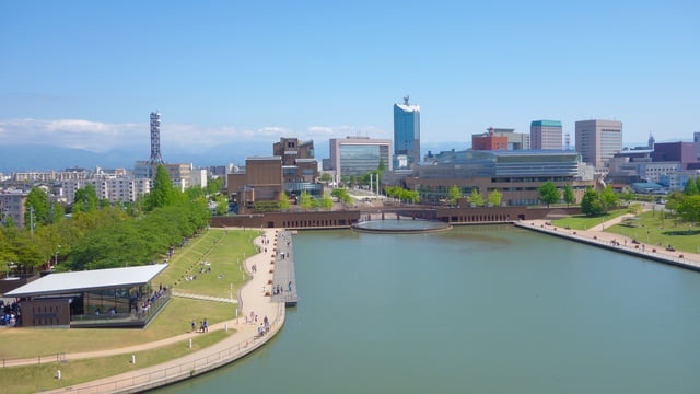 Im Park können Sie Kanalrundfahrten, Veranstaltungen, Vogelbeobachtungen und mehr genießen. Es gibt auch Restaurants, Cafés und sogar Übernachtungsmöglichkeiten. Es ist der perfekte Ort für alle, die einen ruhigen Tag in der Stadt Toyama verbringen möchten. Da sich das Kunstmuseum der Präfektur Toyama gleich nebenan befindet, empfiehlt es sich unbedingt, beide zusammen zu besuchen.
