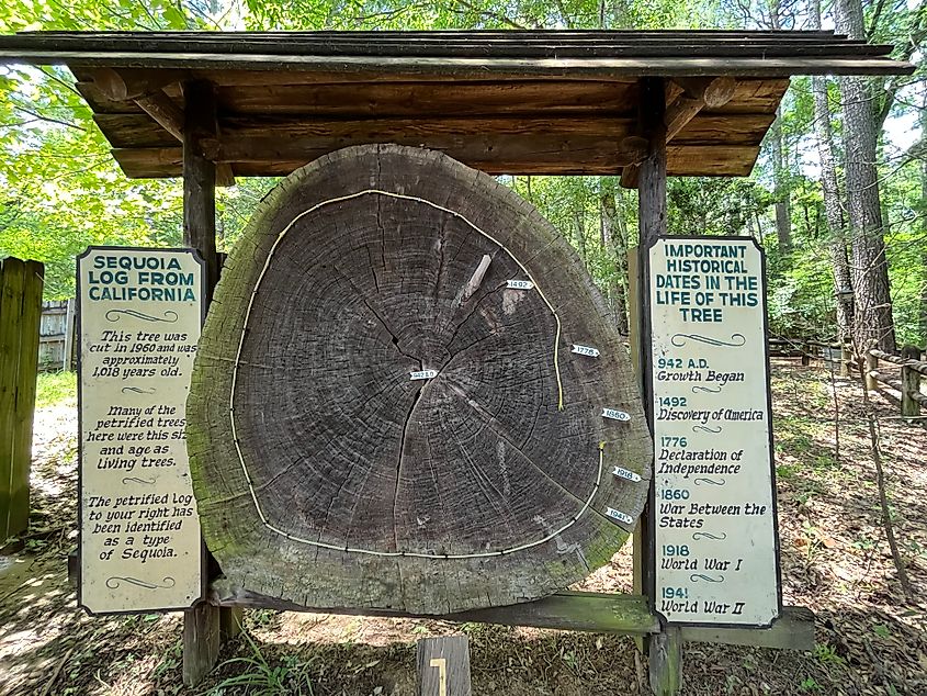 Eine versteinerte Probe aus Kalifornien im Mississippi Petrified Forest in Flora, Mississippi. Bildnachweis: Riis2602 über Wikimedia Commons.