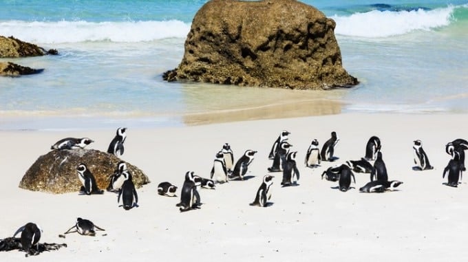 Boulders Beach, der sich entlang der Ostküste der Kaphalbinsel erstreckt, ist berühmt für die Heimat Tausender wilder Pinguine. Diese Pinguine sind als „Jackass Penguins“ (Afrikanische Pinguine/Kappinguine) bekannt und werden etwa 60 cm lang. Sie sind nur in den Küstengebieten Südafrikas und Namibias heimisch.
