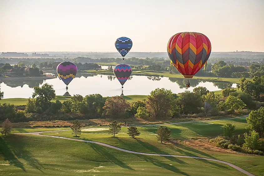 Fahrt mit dem Heißluftballon durch Windsor, Colorado.
