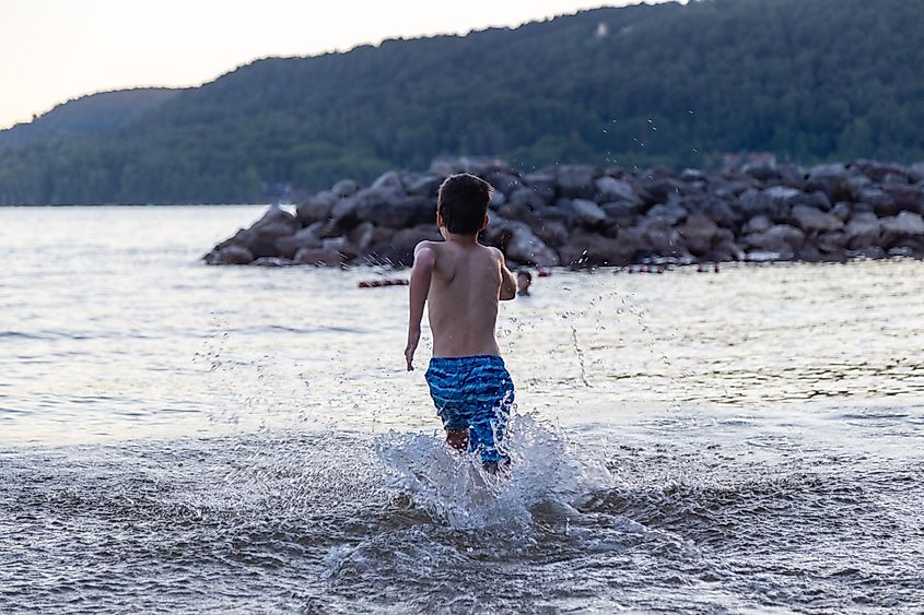 McHenry liegt am nördlichen Ufer des Deep Creek Lake in West Maryland und ist eine ländliche Stadt, die von der vielbeschäftigten Stadtentwicklung ungestört ist und sich perfekt für Abenteurer im Freien eignet. Sie können problemlos einen Tag damit verbringen, den Deep Creek Lake State Park zu erkunden, der zwei Schwimmstrände, 20 Meilen Wander- und Radwegen, Bootsrampen und ein Discovery Center mit Bildungs- und interaktiven Naturgeschichte -Exponaten und einem Geschenkeladen anbietet. Genießen Sie im Monkey Business Adventure Park etwas Lebhafteres, einen Luftabenteuerkurs und eine Zipline für Kinder jeden Alters, oder gehen Sie zum nahe gelegenen Wasserzentrum, wo Sie Kajaks, Boote oder Paddleboards mieten können, um den Deep Creek Lake zu erkunden.