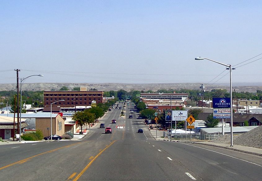 der West Main Street in der Stadt Riverton, Wyoming. Von Vasiliymeshko – Eigene Arbeit, CC BY-SA 4.0, Wikimedia Commons.