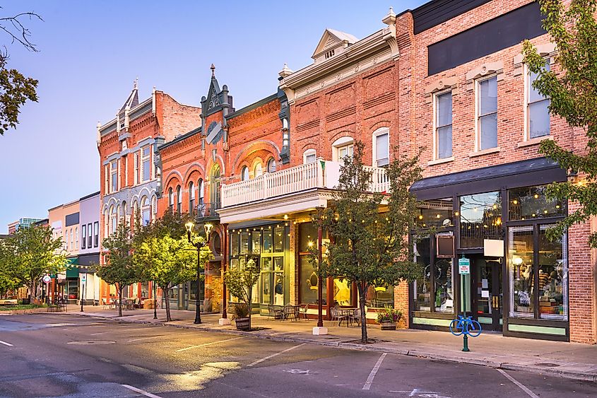 Provo, Utah, auf der Center Street in der Abenddämmerung.