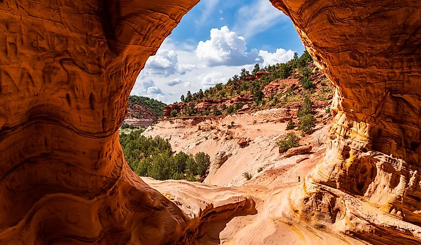 Ein Blick aus dem Inneren der Moqui Cave, Kanab, Utah.
