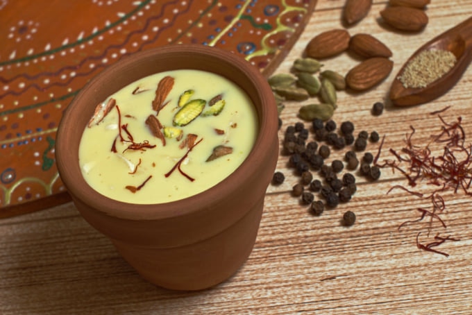 Dieses süße Milchgetränk wird aus einer Reihe von Nüssen, Samen und Gewürzen hergestellt und ist besonders im Sommer köstlich und erfrischend. Beliebt im Norden Indiens, besonders während der Feste Holi und Maha Shivratri, wird es normalerweise aus Mandeln, Cashewnüssen, Zimt, Kardamom und Mohn hergestellt und mit Milch und Zucker vermischt.