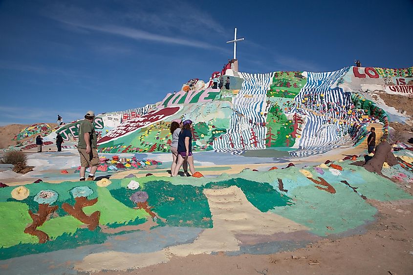 Mit nur etwa 600 Einwohnern wird Niland von Reisenden in Südkalifornien oft übersehen. Allerdings verfügt die Stadt über mehrere Attraktionen, die einen Tagesausflug lohnenswert machen. East Jesus ist eine dieser Attraktionen: eine experimentelle Open-Air-Kunstinstallation auf einer Fläche von 30 Hektar, die ausschließlich großformatigen Kunstwerken gewidmet ist. Die Installation dient auch als Kunstresidenzprogramm und bietet Künstlern, Schriftstellern, Musikern, Wissenschaftlern und anderen kreativen Köpfen einen Zufluchtsort. Salvation Mountain ist eine weitere künstlerische Ikone der Stadt. Diese 15 Meter hohe Kreation aus Lehm und Ton erhebt sich aus der flachen Wüste und ist mit bemalten Bäumen, Blumen, Sonnen, Wasserfällen, Vögeln und anderen farbenfrohen Motiven geschmückt. Etwa 40 Minuten von Niland entfernt erreichen Reisende die Imperial Sand Dunes, eine beeindruckende Fläche, die sich über mehr als 40 Meilen erstreckt. Diese Dünen waren einst Teil eines alten Sees und wurden durch vom Wind verwehten Sand geformt, wobei einige heute bis zu 90 Meter hoch sind.