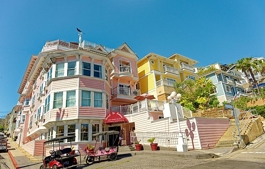Leuchtend farbige Häuser in der Stadt Avalon, Kalifornien. Bildnachweis: Darryl Brooks / Shutterstock.com