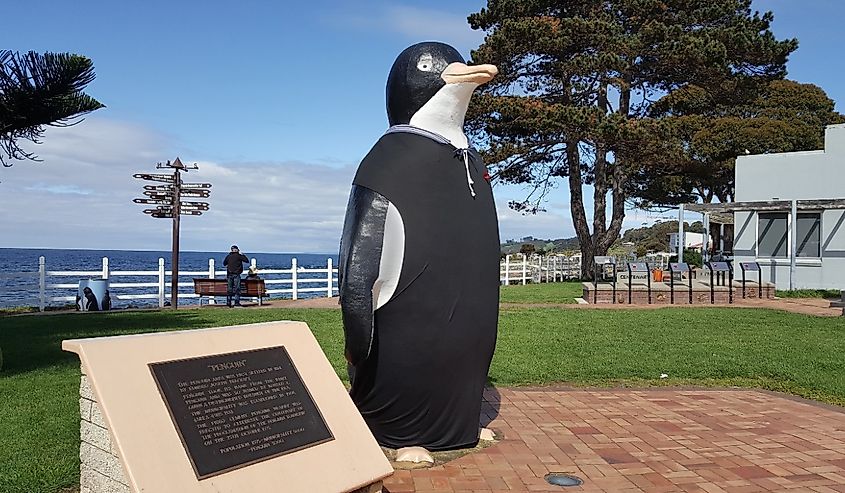 Penguin ist eine Küstenstadt, die nach den kleinen Pinguinen benannt ist, die in der Gegend leben. Ein gemütlicher Spaziergang entlang der Küste von Penguin führt zu Ausblicken auf die Bass Strait, und die berühmte Big Penguin-Statue der Stadt ist ein skurriler und dennoch ungezwungener Ort zum Fotografieren oder einfach zum Genießen der Umgebung.