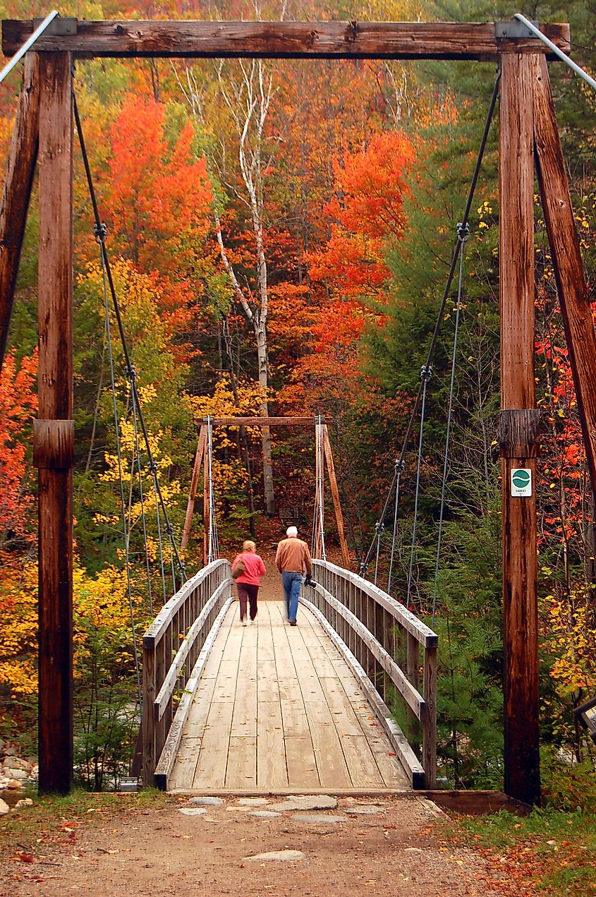 Hängebrücke im Herbst in den White Mountains in der Nähe von Jackson, New Hampshire. Bildnachweis: James Kirkikis / Shutterstock.com