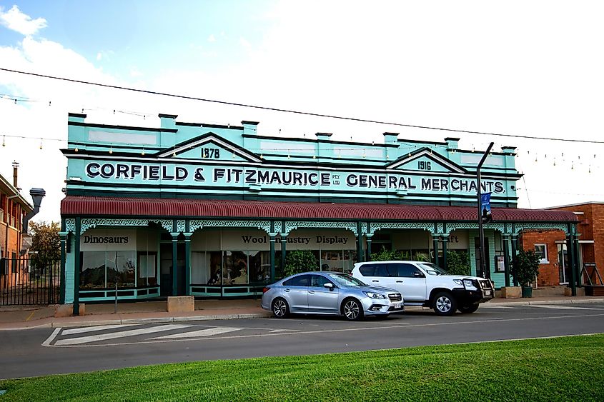 Historisches Gebäude von Corfield und Fitzmaurice in Winton, Queensland, Australien, über Ingeblessas / Shutterstock.com