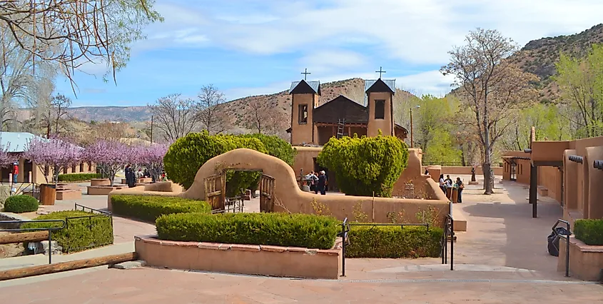Die Hauptstraße von Chimayó verkörpert die spirituellen und kulturellen Traditionen des nördlichen New Mexico. In ihrem Herzen steht El Santuario de Chimayó, ein Wallfahrtsort aus dem frühen 19. Jahrhundert, der als „Lourdes Amerikas“ bekannt ist. Die erdigen Lehmwände und der historische Altar der Kapelle vermitteln ein Gefühl zeitloser Frömmigkeit, während ihr heiliger Boden weiterhin die Gläubigen anzieht. Rund um das Heiligtum führen Webereien und familiengeführte Geschäfte jahrhundertealte hispanische Traditionen fort und verkaufen Decken, religiöse Kunst und lokale Lebensmittel. Die Restaurants der Stadt servieren klassische Gerichte aus New Mexico, darunter das berühmte rote Chimayó-Chili. Sie müssen einen Halt in Rancho De Chimayó einlegen, bekannt für seine handgerollten Tamales, Carne Adovada und gefrorene Feigenkaktuslimonade. Jenseits der Straße bietet der Santa Cruz Lake Wanderwege und ruhige Ausblicke, einen natürlichen Kontrast zur andächtigen Energie des Dorfes. Die Hauptstraße von Chimayó ist mehr als nur ein Handelszentrum. Es ist eine Schnittstelle zwischen Glauben, Tradition und natürlicher Schönheit, die sowohl zutiefst persönlich als auch einzigartig neu-mexikanisch wirkt.
