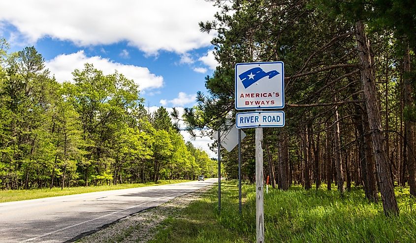 River Road Scenic Byway im Huron-Manistee National Forest, Oscoda, Michigan.