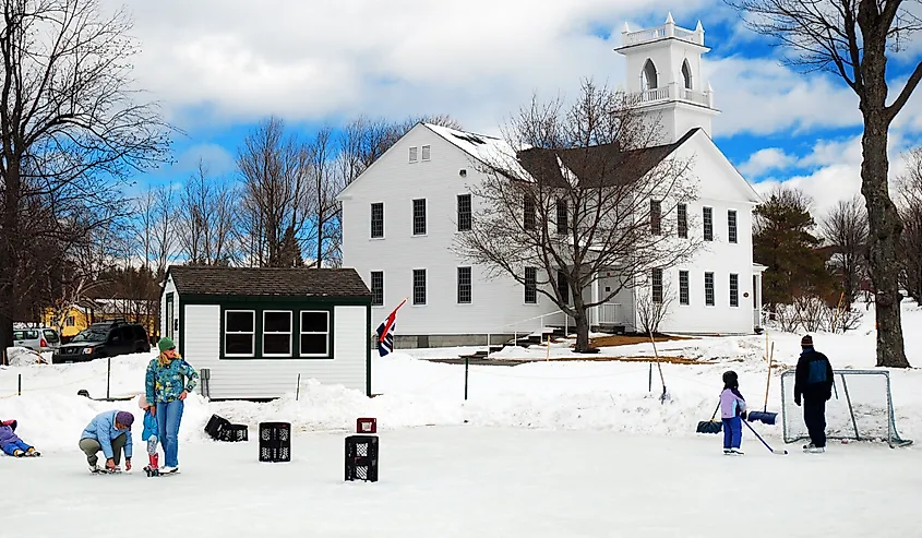 Eisbahn in New London, New Hampshire. Bildnachweis James Kirkikis über Shutterstock