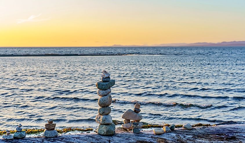Felshaufen am malerischen Strand in Parksville, BC, Kanada