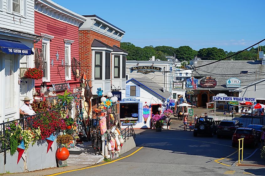 Die lebhafte und belebte Hauptstraße von Bar Harbor, Maine. Bildnachweis Darryl Brooks über Shutterstock
