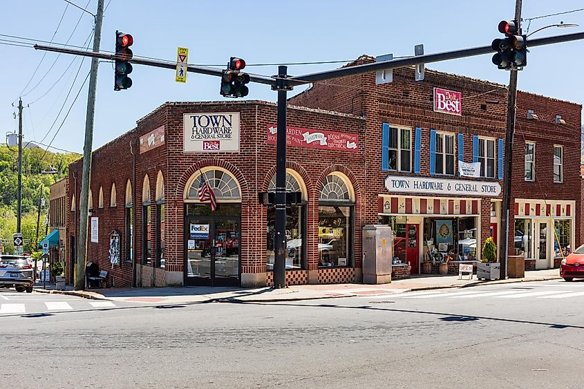 Eisenwaren- und Gemischtwarenladen in Black Mountain, North Carolina. Bildnachweis Nolichuckyjake über Shutterstock.com