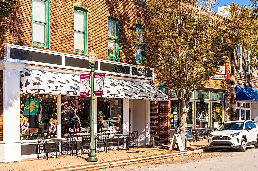 Ein beliebtes Café im New Bern Historic Area liegt im Schatten von Bäumen. Bildnachweis: Wileydoc / Shutterstock.com