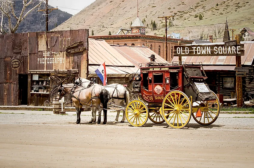 Eine Pferdekutsche im historischen Viertel von Silverton, Colorado.