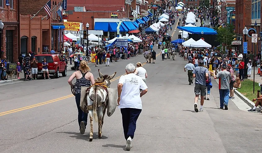 Eselrennen während des Festivals in Cripple Creek, Colorado. Bildnachweis Vicki L. Miller über Shutterstock