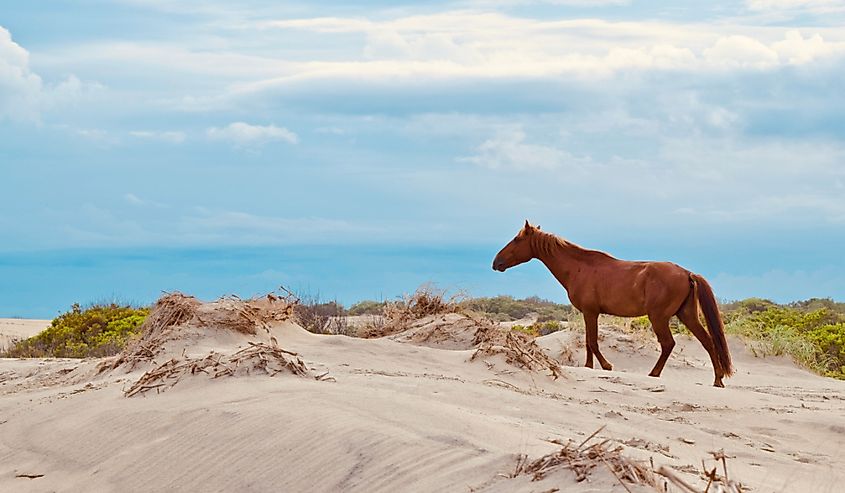 Corolla ist ein Luxusurlaubsziel in Outer Banks, das für seine wilden spanischen Mustangs und seine entspannte Atmosphäre bekannt ist. Die wilde Herde kolonialer spanischer Mustangs ist ebenso beliebt wie die Leuchttürme der Region, und viele Besucher mieten lokale Häuser, um ihnen beim Umherstreifen an den nördlichen Stränden von Corolla und dem benachbarten Carova zuzusehen. Um einen Blick aus der Nähe zu werfen, buchen Sie eine Tour mit Back Beach Horse Tours.