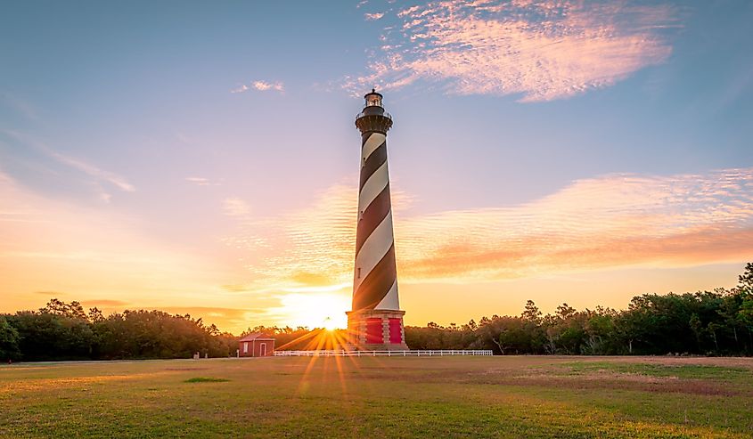 Der kleine Weiler Buxton in der Nähe von Hatteras Island, der für seine zahlreichen Sehenswürdigkeiten und beliebten Wassersportarten bekannt ist, ist vielleicht am bekanntesten für den berühmten Leuchtturm von Cape Hatteras mit seinen charakteristischen schwarzen und weißen Streifen auf einem roten Sockel. Gäste sind eingeladen, auf den Gipfel zu klettern, um den Atlantischen Ozean aus der Vogelperspektive zu betrachten. Gleich die Straße hinunter vom Leuchtturm befindet sich ein Weg für den Allradantrieb zum Cape Point und der beliebtesten Bootsrampe in der Gegend.