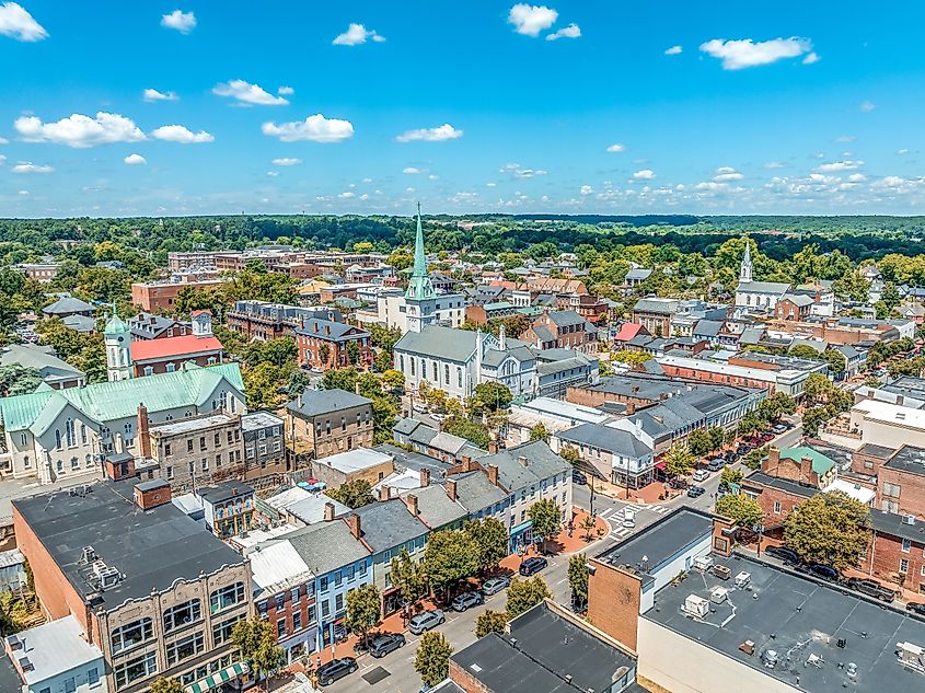Eine Luftaufnahme von Fredericksburg, Virginia.