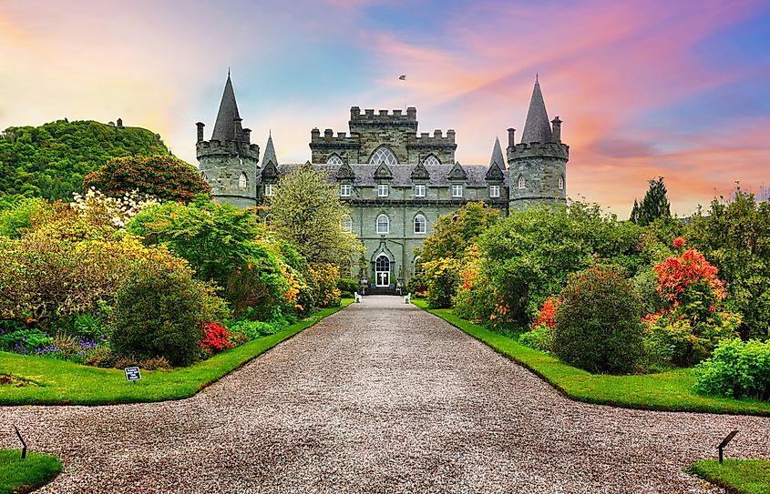 Die bemerkenswerteste Sehenswürdigkeit der Stadt ist Inveraray Castle and Gardens, ein neugotisches Meisterwerk, das nach wie vor das Familienhaus des Herzogs von Argyll und Sitz des Clan Campbell ist. Besucher können das Schloss besichtigen, um die umfangreiche Geschichte und das Erbe der Familie zu erkunden, sowie markierte Spaziergänge durch ihre blühenden Gärten unternehmen.