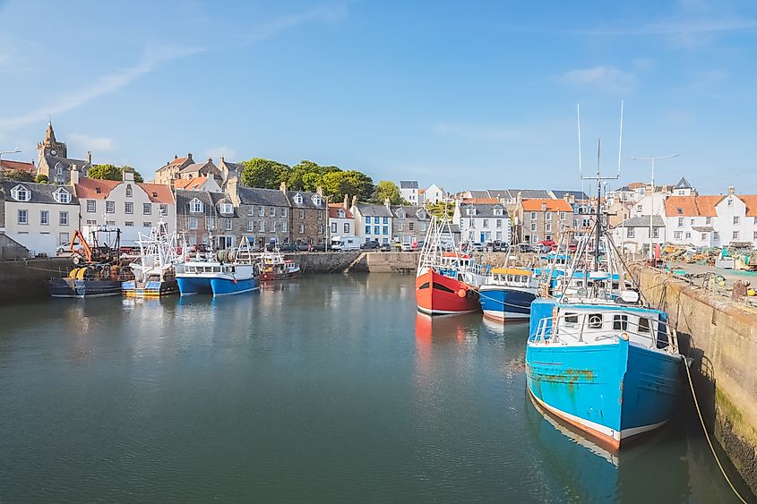 Besucher können einen Spaziergang an malerischen, weiß getünchten Häusern aus dem 17. Jahrhundert mit roten Pfannendächern und farbenfrohen Fensterbänken genießen, die eine atemberaubende Kulisse für die Boote bilden, die im Hafen schaukeln. Eine der Attraktionen von Saint Monan ist Auld Kirk, eine der ältesten Kirchen Schottlands, die noch heute Gemeindemitglieder beherbergt. Die hoch aufragende Steinkirche wurde vermutlich um 1265 n. Chr. erbaut und soll ein Geschenk von König David II. an den Heiligen Monans gewesen sein, nachdem er einen heftigen Sturm auf See überlebt hatte. Eine zweite Theorie besagt, dass David I. dank der im Kampf verwundeten Mönche von Saint Monans für den Bau der ersten Kapelle verantwortlich war. Als eine der letzten verbliebenen mittelalterlichen Kirchen in Schottland ist ihre Pracht ein Wunder.