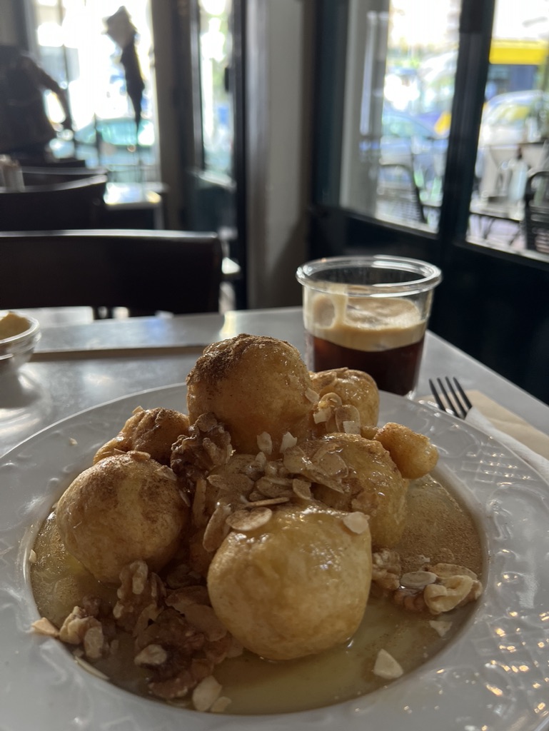 Es ist ein großartiger Ort, um Ihren Laptop hervorzuholen und gleichzeitig eine köstliche Mahlzeit oder einen Snack zu genießen. Wir empfehlen die süßen Loukoumades, frittierte Donutbällchen, überzogen mit Honig, Zimt und Nüssen.