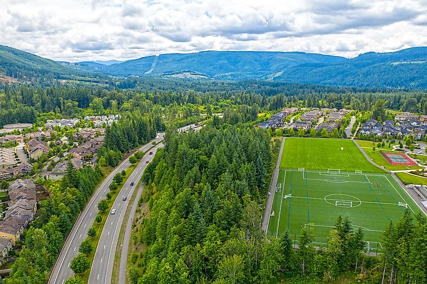 Luftaufnahme von Snoqualmie, Washington.