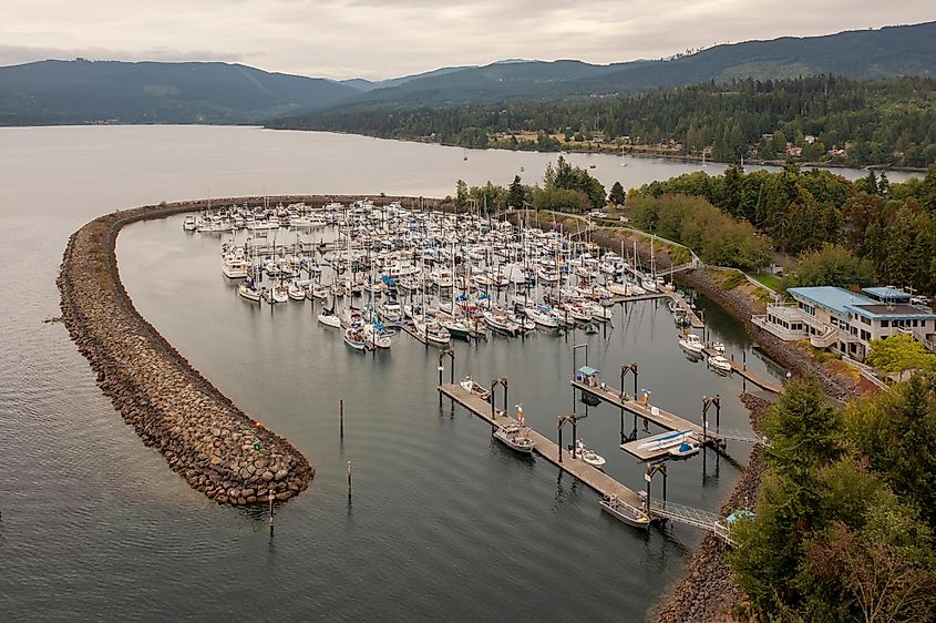 Luftaufnahme von John Wayne Marina, Sequim, Washington.