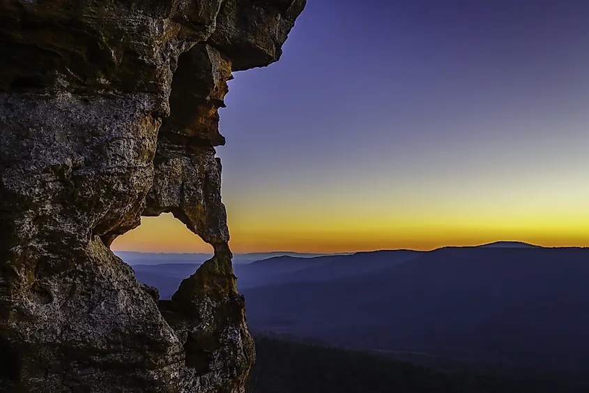 Diese Nebenstraße ist voller scharfer Kurven und steiler Steigungen, also bereiten Sie sich auf eine Achterbahnfahrt voller Spaß vor. Es beginnt im Ozark National Forest in der Nähe der Interstate 40 und führt weiter nach Norden entlang des Highway 23 zum Highway 16 und endet in Brashears. Da es entlang der Route wenig Entwicklung gibt, werden Reisende in den Ozarks ein unberührtes Erlebnis erleben. Die Reise beginnt in Fayetteville (passend, da dort die University of Arkansas Razorbacks, auch bekannt als Hogs), beheimatet ist, und führt südöstlich auf dem Highway 16 nach White Oak. Die 19 Meilen lange Fahrt führt zum Pig Trail Bypass Country Café, den Pig Trail Falls und dem Mulberry River. Das Pig Trail Bypass Country Café in Elkins ist eine großartige Gelegenheit, Benzin und Lebensmittel für die bevorstehende Reise zu besorgen. Das Café ist berühmt für seine Hooshburger, daher ist es ein Muss, sich einen zu schnappen. Die Pig Trail Falls liegen direkt am Highway 23. Dieser 18 Fuß hohe Wasserfall kann von Ihrem Auto aus besichtigt werden, oder der abenteuerlustigere Reisende kann hinter den Wasserfällen spazieren gehen. Der Mulberry River ist ein wilder Fluss, der in den Ozarks beginnt und in den Arkansas River mündet. Der Fluss verläuft über Felsvorsprünge, macht scharfe Kurven und ist eine großartige Angelsportart, um Schwarzbarsch, Forellenbarsch und Fleckenbarsch zu fangen. Der Fluss ist über den Highway 23 leicht zu erreichen. Der Pig Trail Scenic Byway ist eine ausgezeichnete Straße für abenteuerlustige Straßenkämpfer.