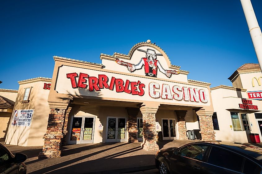 Terrible’s Casino und Tankstelle. Suchscheinwerfer Nevada, USA. Bildnachweis: David Buzzard / Shutterstock.com