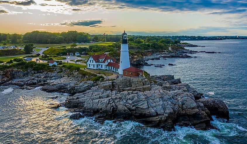 Heimat des legendären Portland Head Light aus dem Jahr 1791, der Stolz der Einheimischen ist unübertroffen und Radfahren ist eine beliebte Aktivität, mit Verleihmöglichkeiten in der Stadt und asphaltierten Küstenwegen in zwei Parks, auf denen Sie in der Meeresbrise radeln können. Die operative Navigationshilfe und das Museum befinden sich an der felsigen Küste im Fort Williams Park, einem kostenlosen Park mit einer zerklüfteten, malerischen Küste, ehemaligen Militärbunkern und den Ruinen des legendären Goddard Mansion. Da Fenster und Türen fehlen, können Sie direkt in das riesige Herrenhaus blicken.