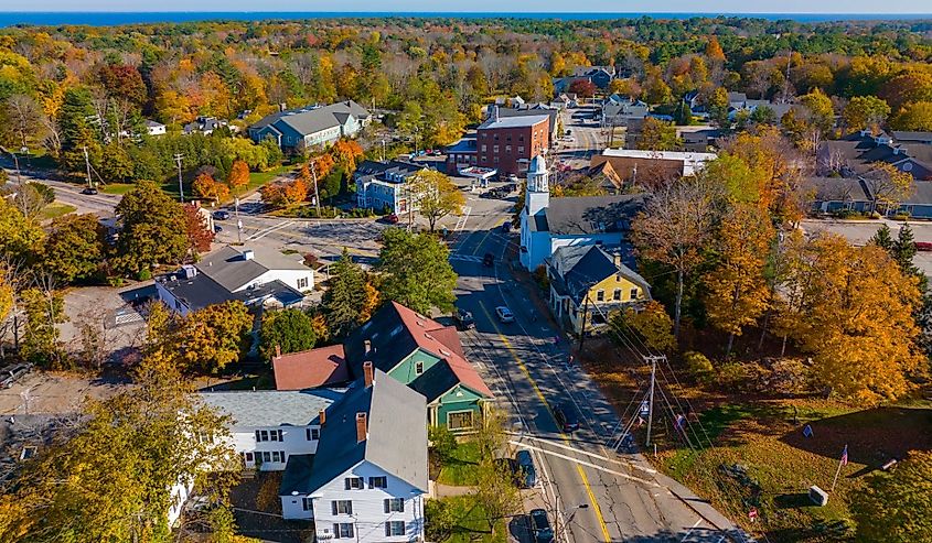 Innenstadtszene in Damariscotta, Maine. Bildnachweis Bilder von Gerald über Shutterstock