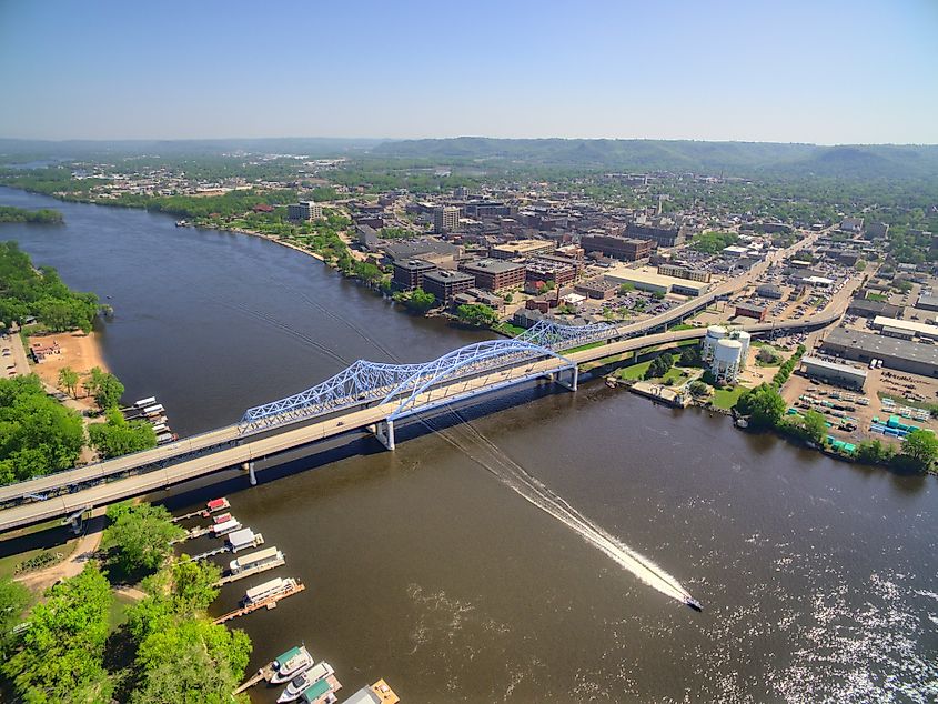 La Crosse, das direkt vom riesigen Mississippi -Fluss eingebettet ist. Es wird Sie mit dem atemberaubenden Blick auf den Fluss und den hohen Klippen, die ihn umgeben, erstaunt. Es gibt so viele coole Parks in diesem Bereich. Der Riverside Park ist zweifellos der beste. Sie finden hier ein fantastisches Wasserfunktion, fantastische Wanderrouten und atemberaubende Aussichtspunkte. Der Great River State Trail bietet mehr als 24 Meilen erstaunliche Radstrecken, die dem Fluss auf Schritt und Tritt folgen. Es ist ein Muss für alle, die die Natur genießen.