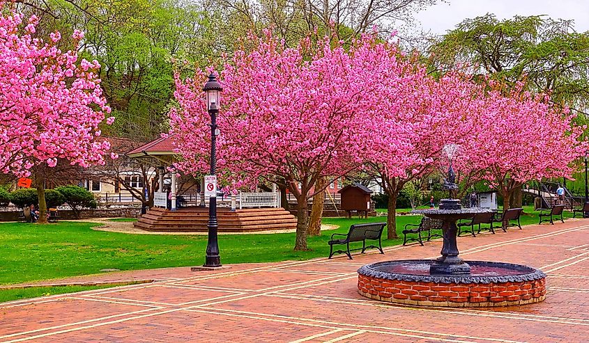 Bäume im Park in voller Blüte in Bellefonte, Pennsylvania.