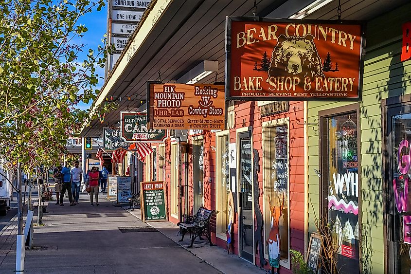 Geschäfte entlang der Canyon Street in West Yellowstone, Montana. Bildnachweis: Matthew Thomas Allen über Shutterstock.com