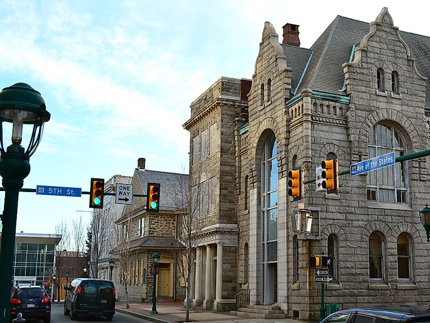 Chester, eine der ältesten zu besuchenden Städte in Pennsylvania, wurde erstmals 1644 von den Schweden besiedelt und 1681 zu einer Kolonialsiedlung. Hier befindet sich die William Penn Landing Site, der erste Landeplatz des Philadelphia-Territoriums von William, der schließlich die Provinz Pennsylvania gründete. Chester hat eine gute Kunstszene und ein Spaziergang durch die Alleen in der Innenstadt ermöglicht es Ihnen, mit der kreativen Gemeinschaft in Einrichtungen wie der Nebula Gallery in Kontakt zu treten.