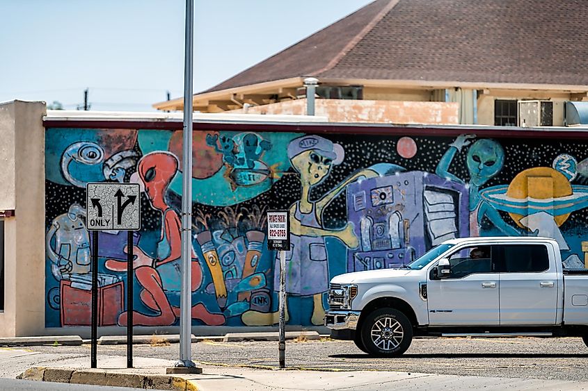 Ein Wandgemälde mit Alien-Thema in Roswell. Kristi Blokhin / Shutterstock.com