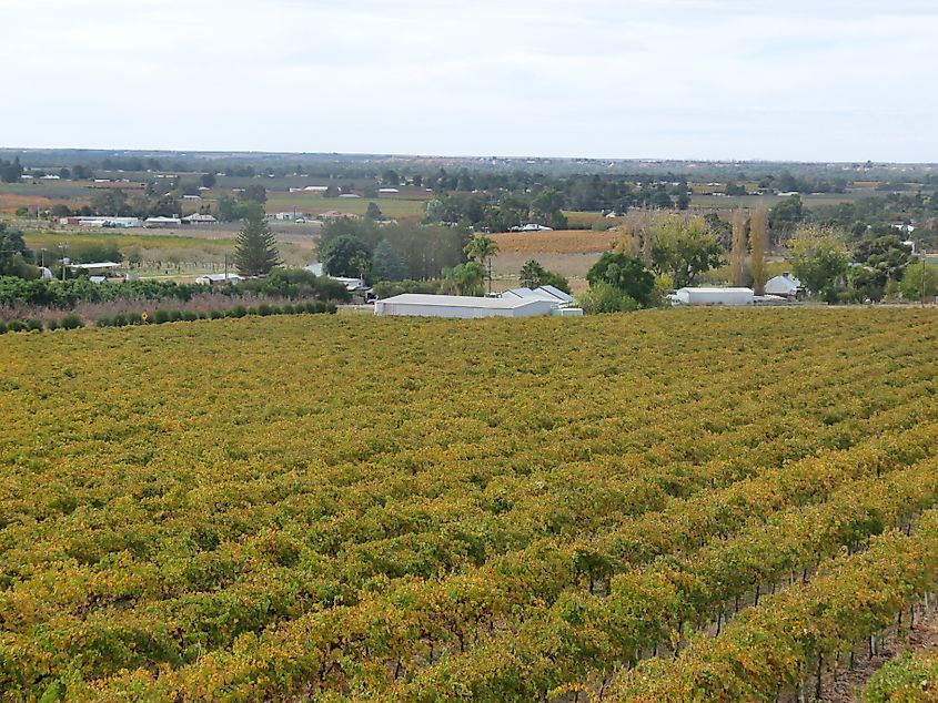 Ein bewässerter Weinberg in Renmark, Südaustralien. Von Feral Arts, CC BY 2.0, Wikimedia Commons.
