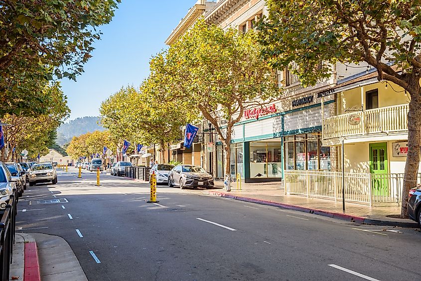 Blick auf die Alvarado Street, an einem sonnigen Morgen, in Monterey, Kalifornien. Bildnachweis: Albert Pego / Shutterstock.com.