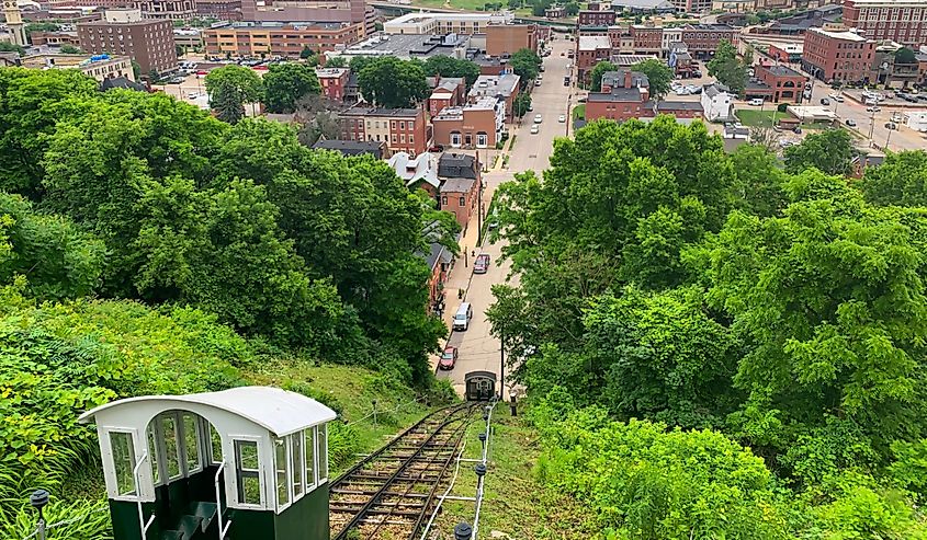 Starten Sie Ihren Tag mit einer Fahrt mit einer so genannten „kürzesten und steilsten Eisenbahn der Welt“. Der Fenelon Place Elevator ist ein Niviscular, der die Besucher einen steilen Bluff hinaufbringt und sie an einem klaren Tag mit Panoramablick auf die Innenstadt von Dubuque, den Mississippi und sogar die Nachbarstaaten belohnt. Oben finden Sie ruhige Wohnstraßen, die sich weit vom geschäftigen Flussufer unten entfernt fühlen.