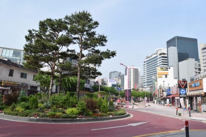 Wenn Sie den Ausgang 9 verlassen, werden Sie sofort auf die „Walking Street“ stoßen, die von Geschäften gesäumt ist, die sich an junge Leute richten. Die Modeboutiquen hier wimmeln nur so von trendigen Artikeln, was es zu einem hervorragenden Ort macht, um sich über die neuesten Modetrends Seouls zu informieren. Mit erschwinglichen Preisen für Mode, Kosmetik, Accessoires und Lebensmittel eignet es sich perfekt für preisgünstiges Einkaufen.